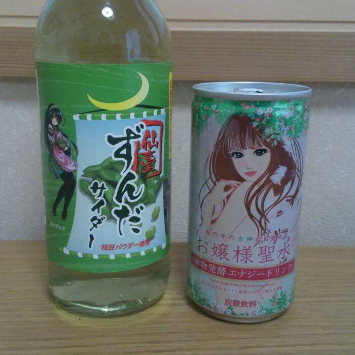 提督が仙台に行った際にお土産で買ってきたドリンク。 東北ずん子のアイテムが何か欲しかったようです(*´艸`) ずんだサイダーは、枝豆の香りと味が濃くて、斬新な美味しさでした♪ あと1つのは、普通に美味しいエナジーでしたが、提督はわざわざコップに注いで飲んでましたねw