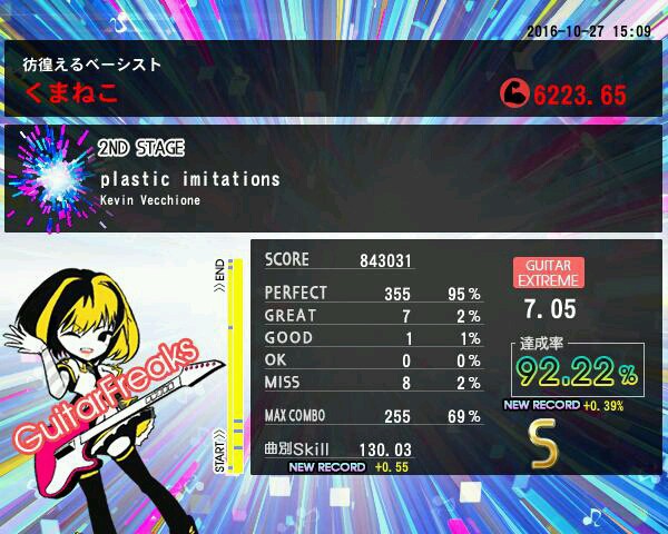 昨日のギターリザルト上げ忘れ。 プライミ 赤G なぁんでミス増えてるのにスキル値更新してるんでぇーすか?(;・∀・) とか言いたい気分になりました。いや、上がってくれる分には嬉しいんだけどさ… これで旧曲枠初の130台ゲット。こっちの枠はまだまだ上限低いから上げてかなきゃな…\(^o^)/