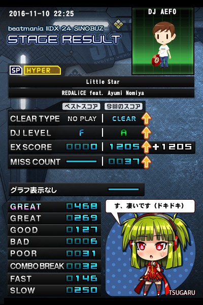 little star初見クリア出来たで! 最近ビーマニのモチベ上がって来たから頑張ろうʬʬʬ