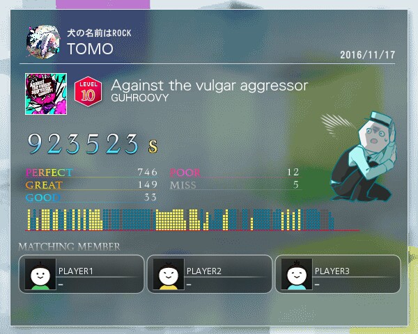 Against the vulgar aggressor。 スタドン以来の新曲ですねw。 ミュージックバー見た瞬間「おぉっ」となりました(;^_^A。 真っ青も多いですが‥ 過去3曲よりはまだ押しやすい?