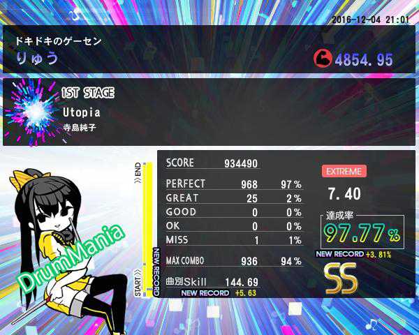 いつもはポップンだけども たまにはドラムを… もう達成率はコレでいいや〜(T_T)