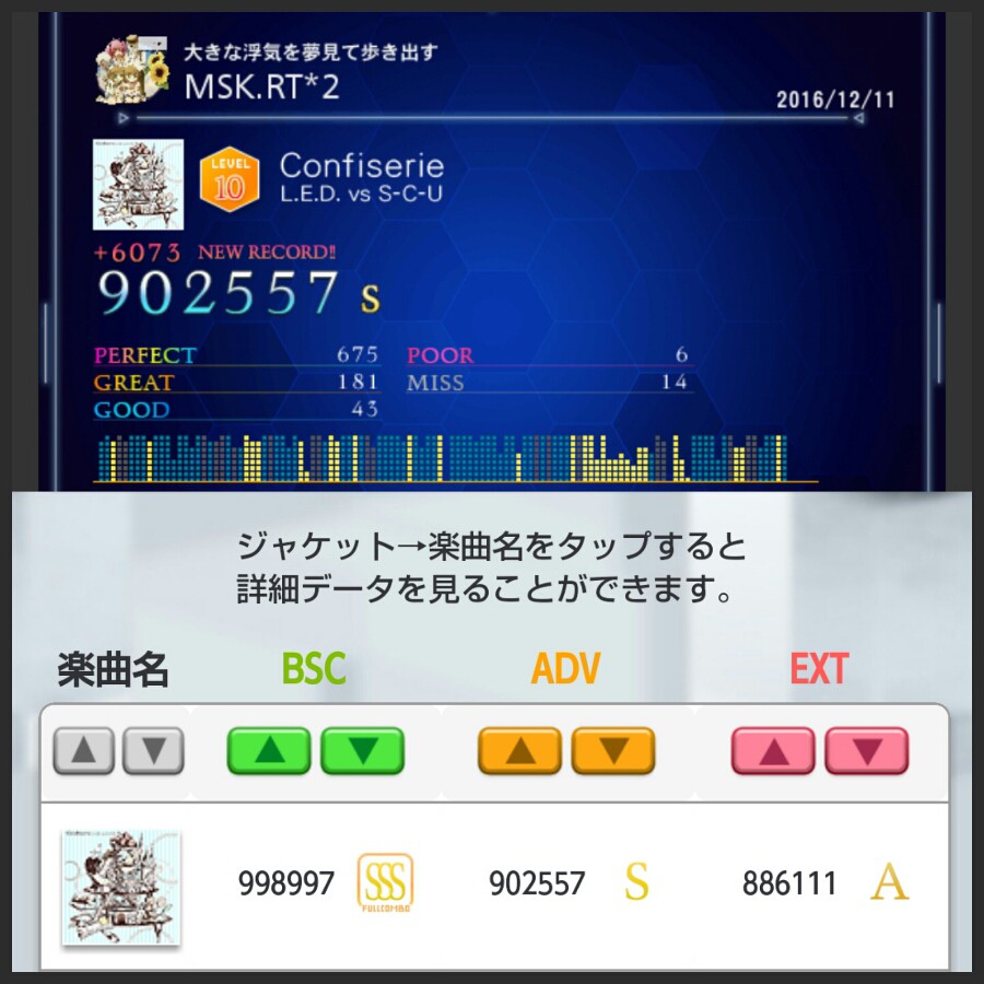 ぬおおおおおおおおおおおおおおおおおおおおおおおコンフィ黄色S乗ったぁ(*≧∀≦*) ゆびーとを始めて4年5ヶ月でようやく黄色Sフィル達成しました♪ヽ(´▽`)/ 諦めずに地道にチャレンジした甲斐がありました。 残りの未S19譜面。