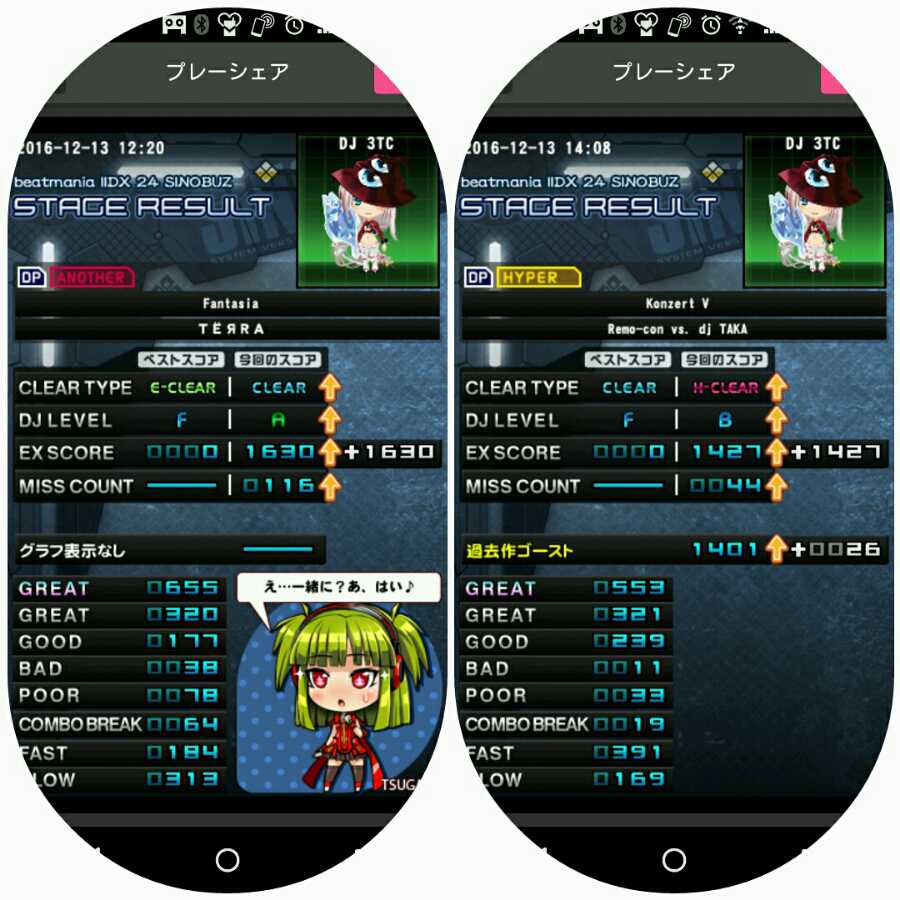 [3TC]今日の収穫 Fantasia [DPA☆10]CLEAR ※OPTION:FLIP Konzert V [DPH☆10]H-CLEAR なんとか残ったFantasia (HARDゲージで)辛うじて残ったkonzert お疲れ様です( ・∇・)ノ