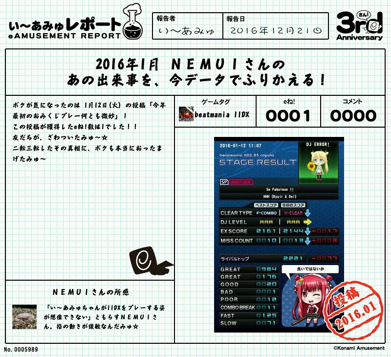 NEMUIさんのe-amusementアプリ投稿詳細