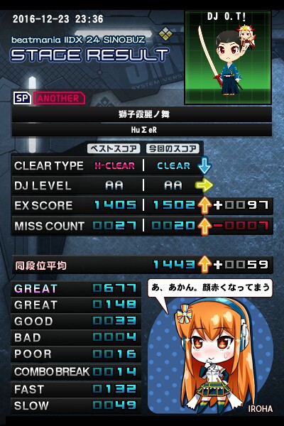 獅子霞麗ノ舞(SPA)正規自己ベスト更新です。鳥までもう少しですよ~。