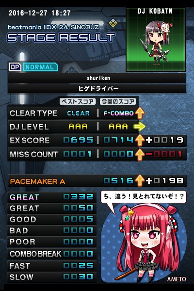 手裏剣DPNスコアUPとフルコン! このスコアでランク外とかDP怖い...