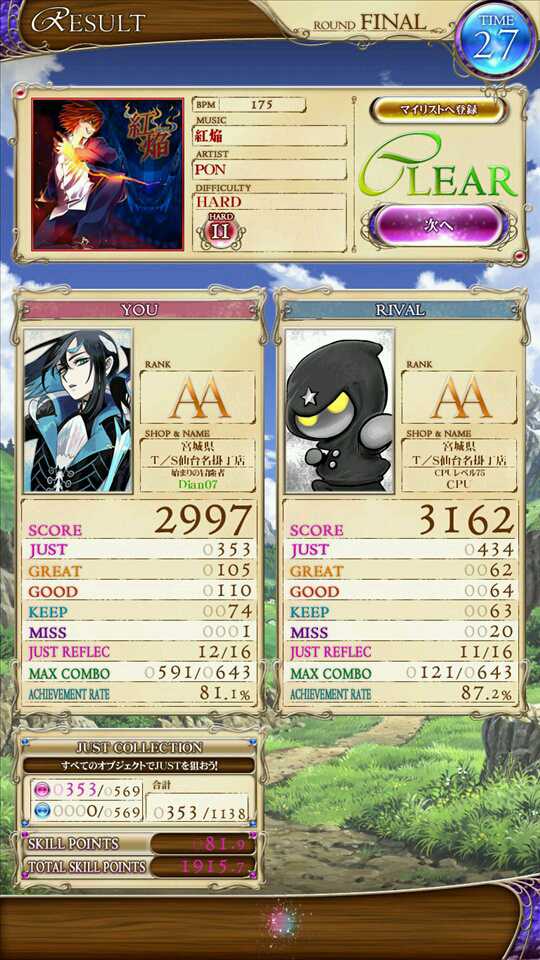 精度グダグダ具合は一先ず置いて…この曲、前作でも1ミスに散々泣かされたんだが(トホホ。