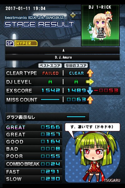 やっとクリアランプが付いた。 ちなみにランダムです。 イントロが取りにくかったがラストが当たりだった。