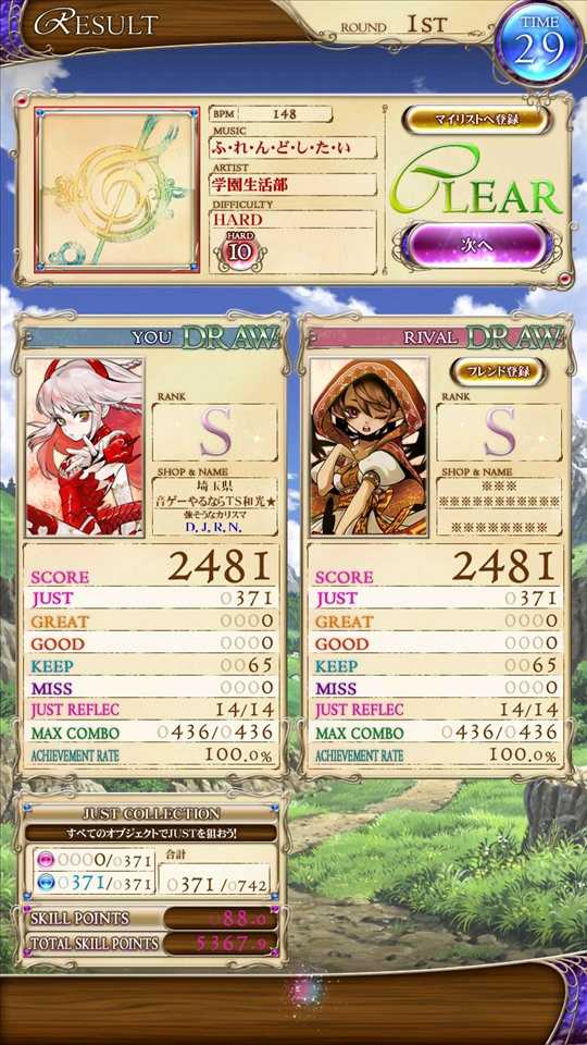 ふ・れ・ん・ど・し・た・い赤EXC オンマチでツインエクセ出た 赤譜面初エクセでもある