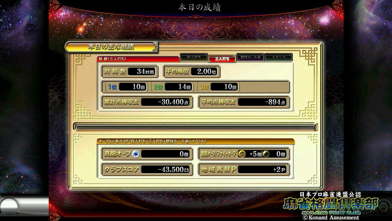 33戦にて三麻残留ポイント確保。 ラスト2戦SS挑戦も共に3位で失敗です。 SS獲得の方々は凄いです。(´д`|||)