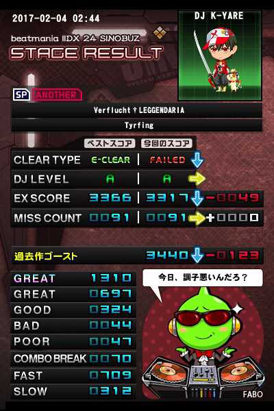 78%落ち。ノマゲ更新ならず。 でもverfluレジェのbp100以下にできたの嬉しい