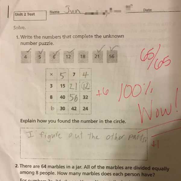 この前帰ってきた算数のテスト、クラスでひとりだけマーベラスフルコンボ取りました! やったー