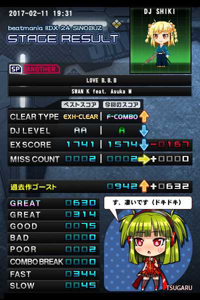 ☆10 LOVE B.B.B フルコン! 師匠からのビンゴカード。これでビンゴになりました(^^) フルコンしてほしい曲を選んでくれたらしいからいずれは全部あけるつもり。