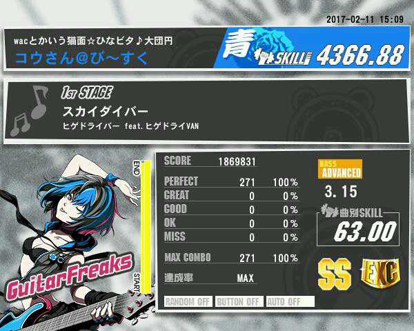 2/11日分、スカイダイバー(黄ベース)Excellent記念に1枚