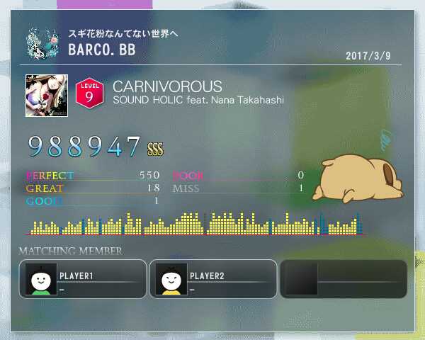 CARNIVOROUS。所見は同時ラッシュでやらかしましたが、2回目で993kでフルコンできました!