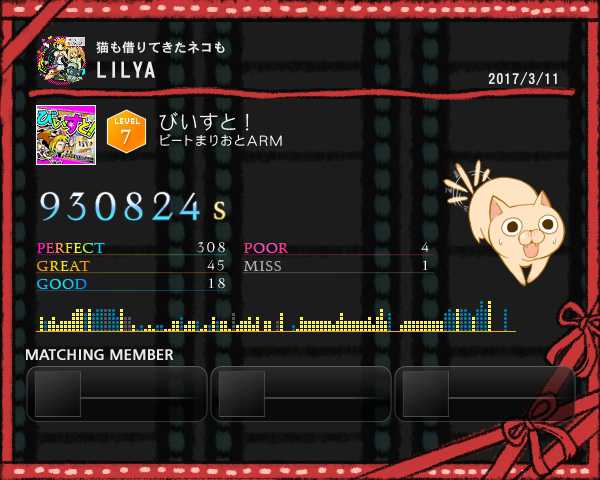 びいすと黄譜面初見93でした(`・ω・´) ホールドが地味に辛いですね(´・ω・`)