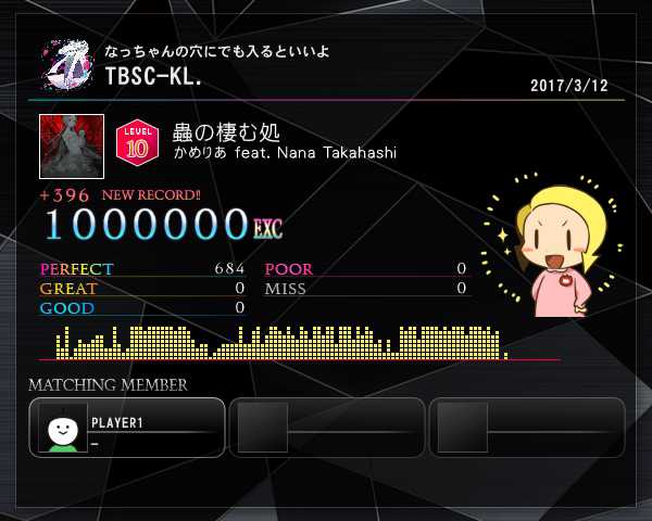 蟲の棲む処 EXC!!!!!👍👍👍 42回かかりました(o´Д`) リズム難しかったですが理解できたら本当に楽しい譜面でした!(*´ω`*)
