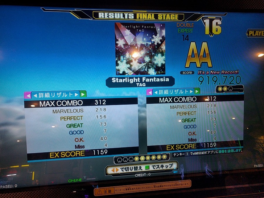 DDRA:ノスタルジア移植記念で本家巡礼 サビの16分階段の順番間違えてこれなので赤までは狙えそう