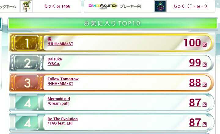 4月に入ったので久しぶりにベーシック入って回数見たら予想通り朧さんがちょうど100回でした٩(* 'ω' *)و リザルトはステルス1ミスだったんだけどねぇ…_(:3」∠)_ そしてなにげに大輔くん頑張ってるww みんな平行して踊ってるから6位以下も芸者とかハピシンとかスティルとか回数がみんな拮抗してました(笑) 久しぶりに見るとだいぶ順位変動してて面白いねぇ…昔はFollow Tomorrowがダントツ1位走ってたのに ( ˘ω˘ ) .。oO(そして消えていくものたちも………Braveが3~4位にいたのが懐かしい…また踊らせてくれないかなぁ)