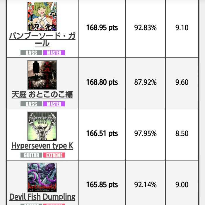 まだ旧曲に170すらない前作8140 みんな出来る曲が出来ないから仕方ないね(゜д゜)