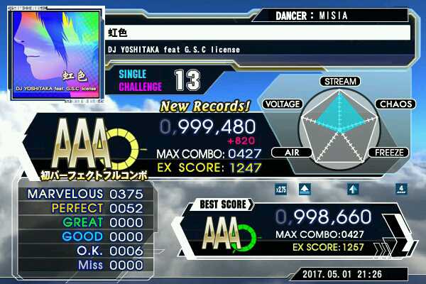 足13PFC、虹色CSP!!リズムが易しめなので13PFC狙いたい人はやってみてもいいかもしれない。なおESPは緑丸のままであります