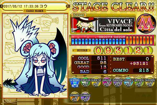 5/12日分、ヴィヴァーチェ(HYPER)をプレイ、スコア飛び