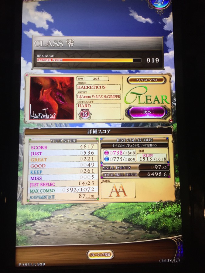 3曲目・ハエレ赤。初代判定にしては光りすぎてないかな?