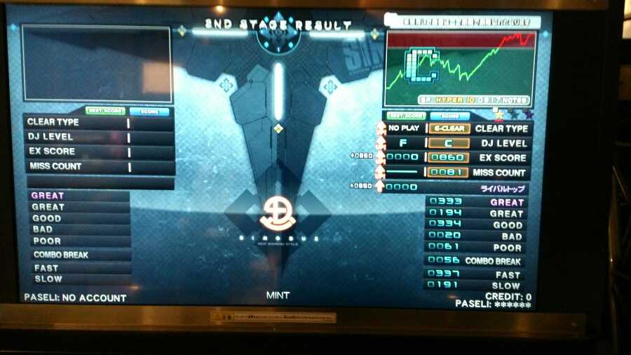 Lv10新規クリア。認識が追いつかず指ぐちゃぐちゃ、それでも何とかトリルと同時押しについていく。 MINT(H) イージー