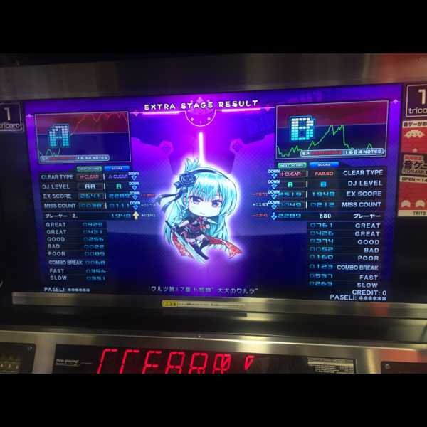 けろ先輩と、同級生(ここでなんて呼ぼうか)と弐寺からのご飯〜(´∀`*) 弐寺の成果はなかったですが、めっちゃ楽しかったー!!ありがとうでした!(^^) リザルトの大犬は同級生とやったS乱。 難しすぎわろた(T ^ T)(T ^ T) ちゃっかりクリアするの凄い。 先輩とやったcolorsS乱も恐ろしかった…。