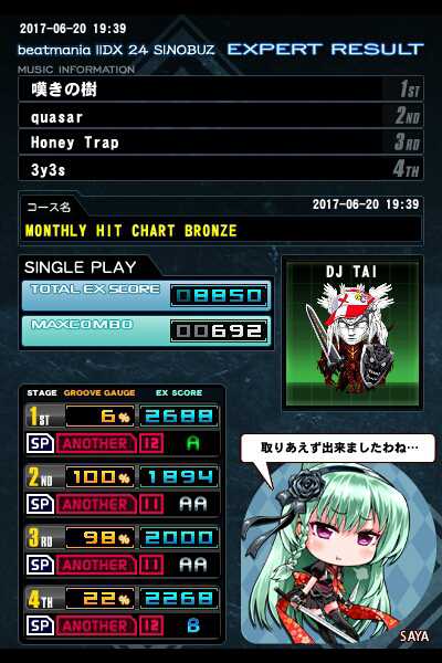 (旧)皆伝課題曲2曲も抜けれたー アイズうまくね?発狂60%残せたんすよ。ドクマリで一桁になっちゃったけど