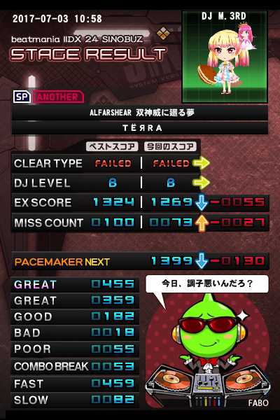 最後の三連同時押し押し損ねて落ちた(´・ω・`) ……その後リベンジは果たしました(>_<)