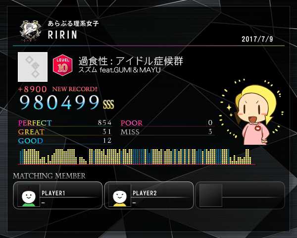 ざっつあいどる! Lv10鳥4曲め出ましたあああああああああ!! 自己ベスト高かったけど、 しばらく伸びなくてすっかり忘れてた… ランマチさんありがとう!笑