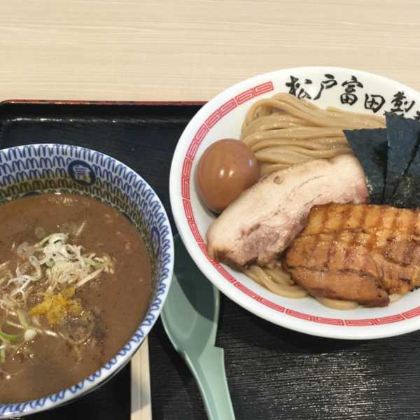 今日のばんごはんー 木更津アウトレットの中にある松戸富田製麺の特製つけそば 超有名店のとみ田の直営店ですー とてもおいしゅうごさいました^ ^ とみ田本店は行ったことないですがどんなもんなんでしょうね、一回行ってみたいものですー