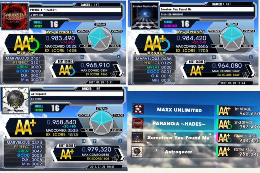 本日のノンバーSP16(2017.7.29) アストロだけ乱で そろそろSP16で99くらいを出せるような曲を何個か作りたいですね