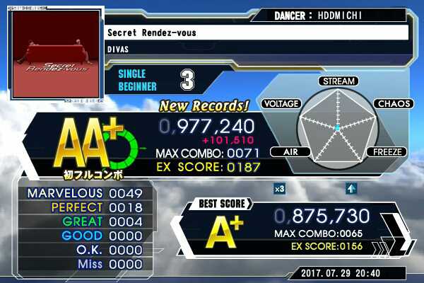 昨日のリノンアドベンチャーⅢ第7戦は ラウンドワン府中本町にて あと、68段! フォトは昨夏、トラタワにて期間限定稼働した DDR MAX 2から、secret rendezvousです デモ画面から流れたのも思い出しますね