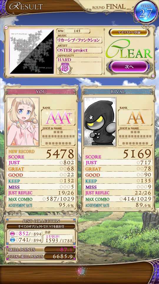 昨日のリフレクで一番嬉しかったヤツ。理科渋WH鳥プラ乗った!新しい15帯の鳥プラ譜面が増えたぞ