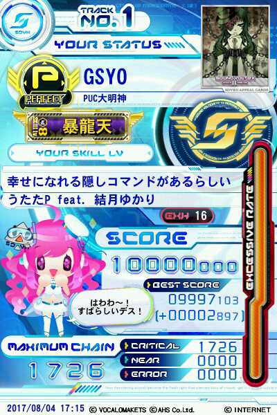 幸せになれる隠しコマンドがあるらしい EXH PUC。やっとできた!旧15パフェ3曲目!パフェってなるとツマミより鍵盤ゲーな気がする