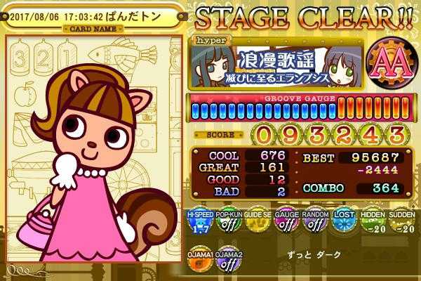 浪漫歌謡H BAD2。これも未だフルコンできず。 左手トリルはつながったのよ、ちゃんと。