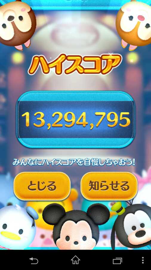 週かわったし寝る前にちょっとツムツムのつもりが、いきなりのハイスコアになりました💦 全アイテム使用で以前のハイスコアと同じ1100万になったので、迷わずルビー延長をつけました😅 スキルマのジャスミンさん、流石です(*^^*) 自動消去は点数出にくいかもしれませんが、たまに、配置がいいときは、上手く取れるときがあります😊