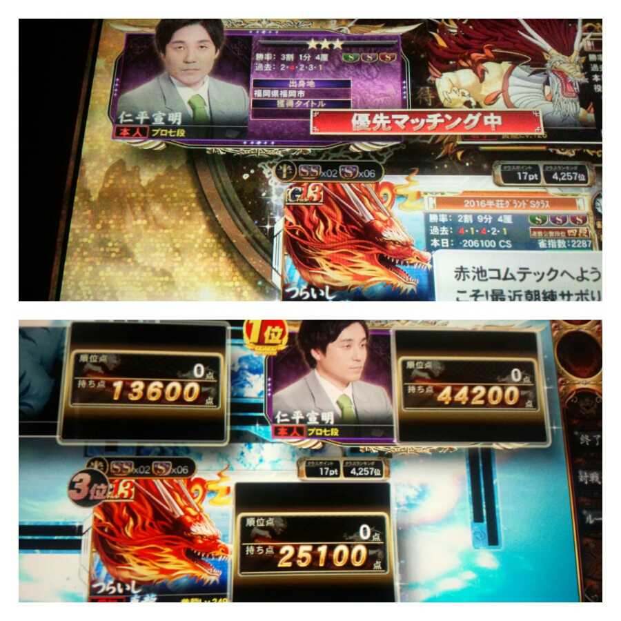 キタキタキタキタ━━━(゚∀゚≡(゚∀゚≡゚∀゚)≡゚∀゚)━━━━!! 念願の仁平プロ同卓!ありがとうございました! 見せ場はありましたが、最後自分が満貫放銃…(´;ω;`)ブワッ トップお見後です!m(_ _)m でもあの放銃回避は自分には出来ませ〜ん( 'ω')