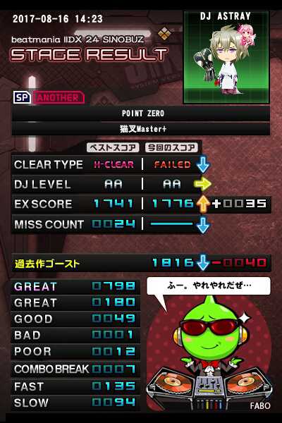 今日のデラ! 乱、あと40ノーツくらい?皿複合がS1357軸?とかでゴミとか押し切れなくてガシャン( ノД`)…