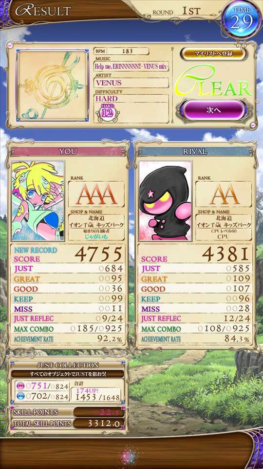 わぁ〜い。゚✶ฺ.ヽ(*´∀`*)ノ✶゚ฺ♡スコアを更新したょ♪旦(⌒ヮ⌒)ノシ♪