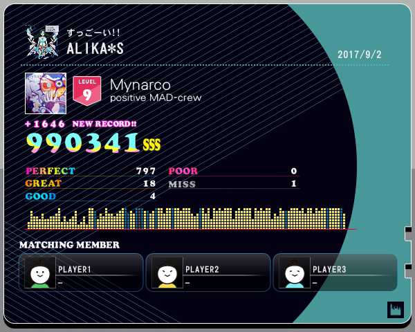 元Lv10スコアアップで990k乗せ。FCまだ出来ない…