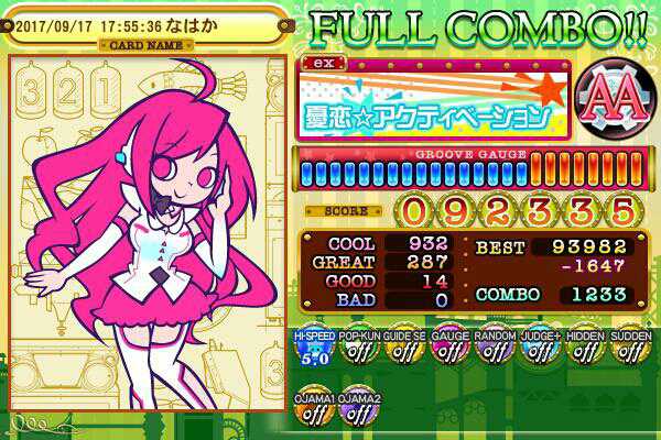 これフルコンできた!( ^-^)ノ∠※。.:*:・'°☆ やっとだ。好きな曲だからめっちゃうれしい!(^-^)/