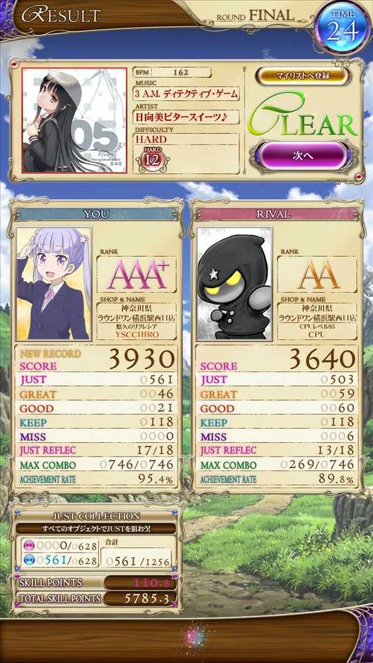 ☆12、3 A.M. ディテクティブ・ゲーム 初見フルコンは嬉しかったですが、スキルポイント加算対象外 スキルポイント上げるためにはレベル13フルコン必要になってます