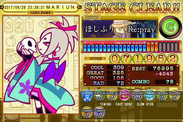 本来だったら絶対クリアにならないよね、これ。 グルーヴハンデ付きのクリアを 果たしてクリアと言っていいのだろうか…?