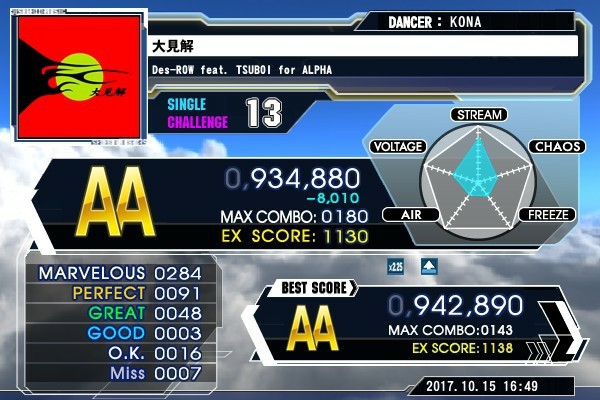 AA+かフルコン狙えそうなんだけどなあ、天ヒー苦手だからこの手の譜面は苦手や(´・ω・`)