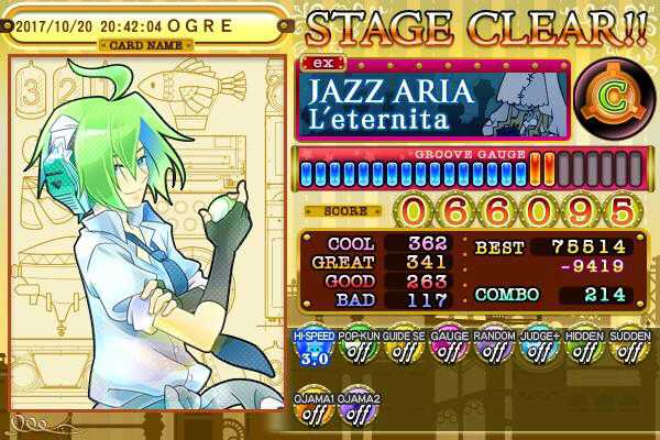 ジャズアリアEX、まさかのクリア! 低速地帯で空でしたが、そこから巻き返して、何とかクリアです! それにしても、このBAD数……