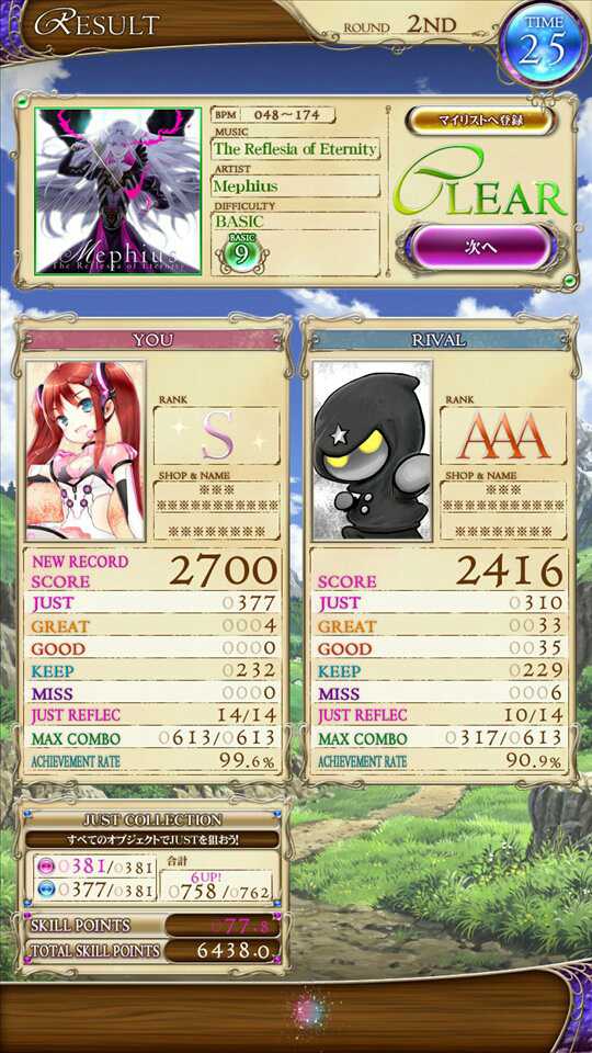 #reflecbeat 悠久のリフレシア緑連プレイ。合計7回で金枠になりました。 画像が最高記録の4グレです。
