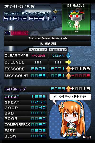 すっごいのびた 縦連一個抜きだとBPもスコアも安定する様子